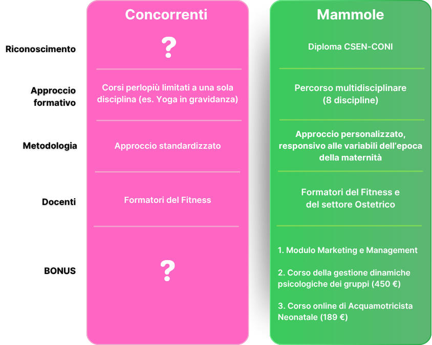 Dal 1991, Mammole forma professionisti del benessere materno-infantile con programmi unici e riconosciuti.La nostra esperienza ha portato alla pubblicazione del primo manuale italiano sul fitness in gravidanza e post-parto, oggi punto di riferimento del settore.📘 “Fitness consapevole in gravidanza e post-partum” unisce linee guida scientifiche e pratica corporea, offrendo basi solide.