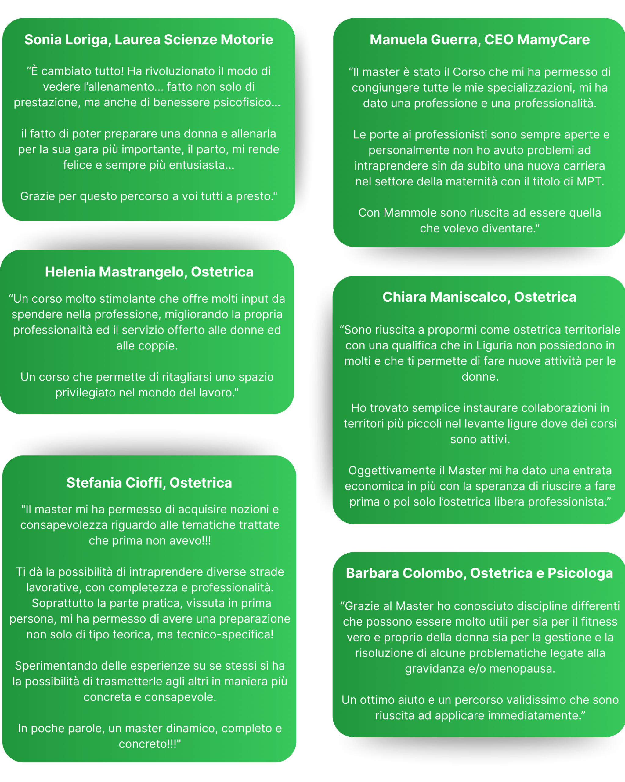 "Dopo il conseguimento del corso, ho avuto l’opportunità di lavorare con le mamme, affiancando al corso preparto attività fitness con basi di yoga e pilates.